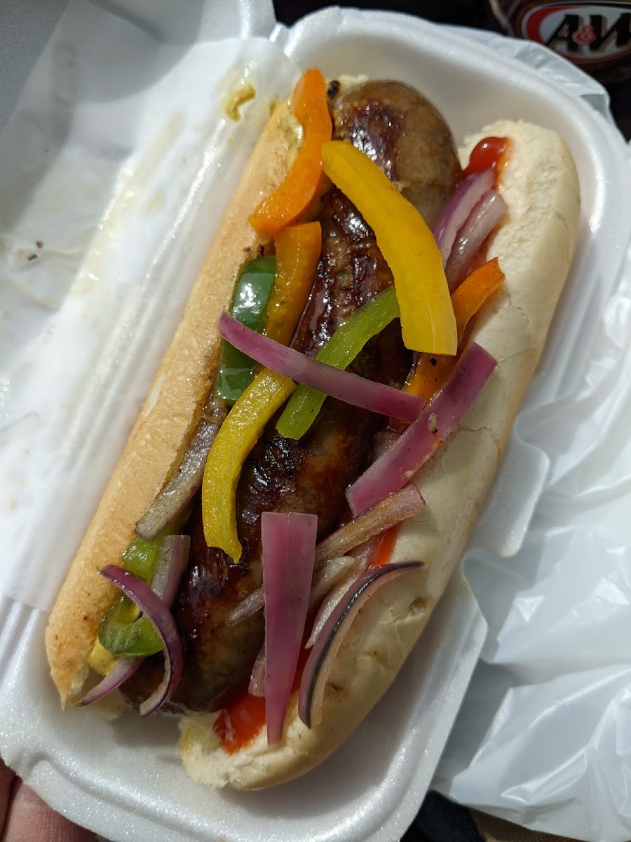 Ziggy Dogs has a lot to choose from! We had a short wait as a few people were picking up their orders. I needed the time to read the menu. We decided on Bratwurst. Delicious & still hot when we got them home. (I saw several people who couldn't wait & were eating in their cars.)